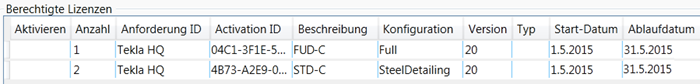 Tekla License Administration Tool zeigt Informationen zu berechtigten Lizenzen, aktivierten Lizenzen und zur Lizenzverwendung an. Sie können im Tool auch Lizenzen aktivieren, deaktivieren oder reparieren.