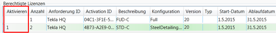 - Anzahl der auf dem Lizenzserver aktivierten Lizenzen