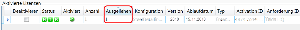Grund: Sie können keine Lizenz für die Deaktivierung auswählen, wenn die Lizenz noch ausgeliehen ist.