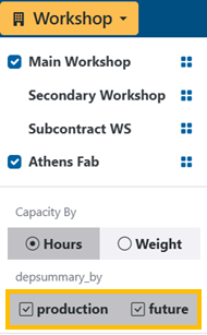 You can define the required work loadings by both hours and weight required for each department within a future work package.