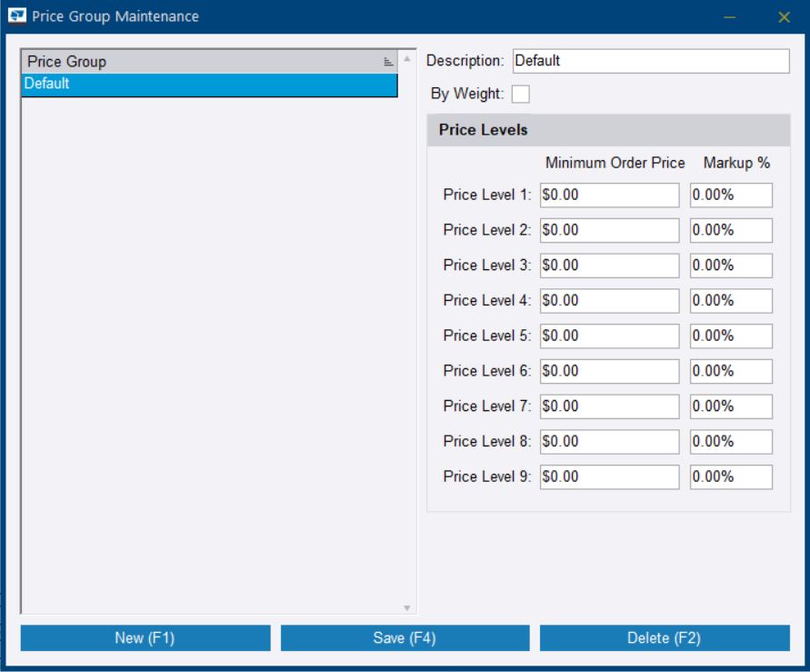 Entry module. You can also define different price levels within price groups. Price levels determine the level of markup that your company gets from each order. Note that you can use any price level with any price group.