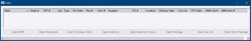 The Links button in production control jobs allows you to view the properties of all materials that are linked to the selected production control items.