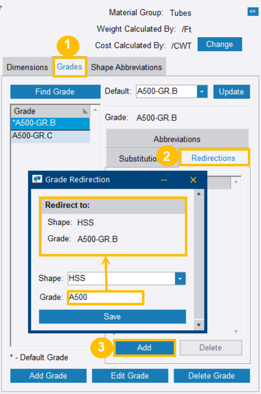 In the Grade field, type the import grade from which you want to redirect to the grade