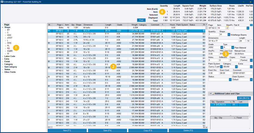 Tekla PowerFab user interface