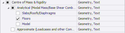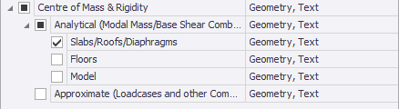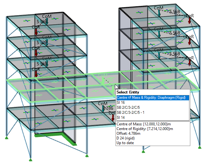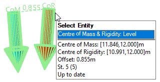 Slabs/Roofs/Diaphragms - a CoM and CoR is shown for each slab/roof/diaphragm