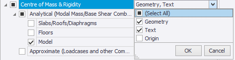 The approximate centers of mass and rigidity can then be displayed by selecting the required loadcase or combination in the Loading list.