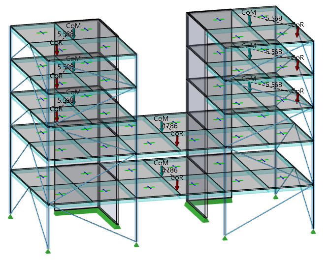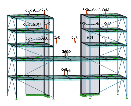 Floors - a single CoM and CoR is shown for each floor