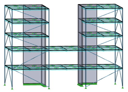 Consider the following model in which each slab is set to be a rigid diaphragm. The top three floors are formed by discrete towers.