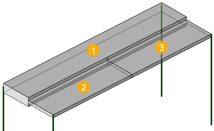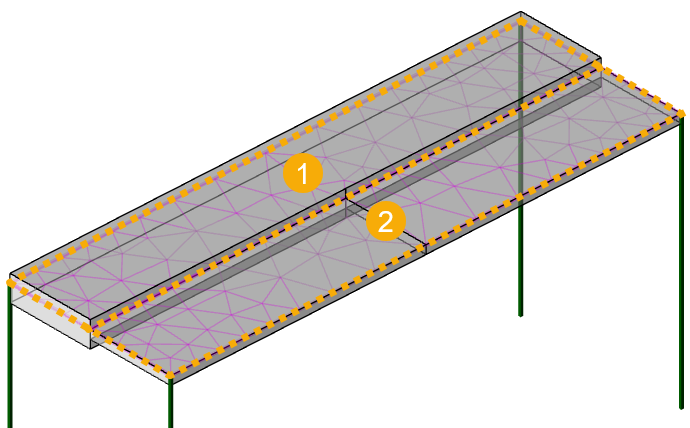 Although there are three slab items in the previous image, there are only two different slab depths. That is why Tekla Structural Designer only creates two mesh groups, as shown in the following image: