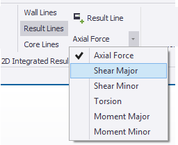 You can place user-defined result lines across 2D element meshes. For these lines, Tekla Structural Designer determines the force and moment results from the shell/plate/membrane nodal analysis results. These results can then be used to assess design solutions, (typically for the design of concrete or masonry wall panels with openings).