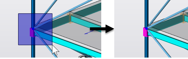 Many Tekla Structural Designer commands require you to make selections. You can make single and area selections from any 2D or 3D view. You can also make selections from the Project Workspace.