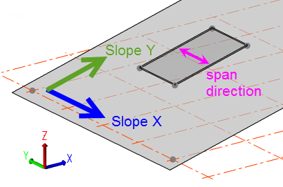- Span direction aligns with X direction of the slope (i.e. perpendicular to the slope, as shown below)