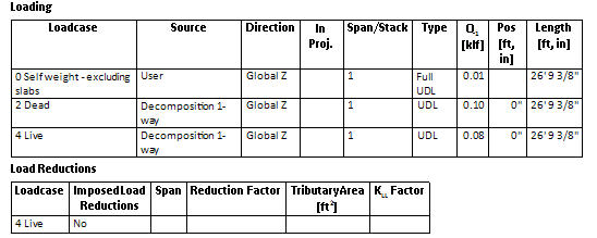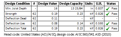 Joist inertia and area values are taken directly from the Steel Joist Institute tables, with the exception of Joist Girders for which you must provide the relevant data.