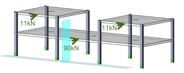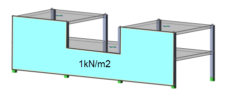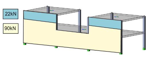 In the two story example shown below, a 1kN/m2 load is applied over the full 22.5m width and 6m height of the building.