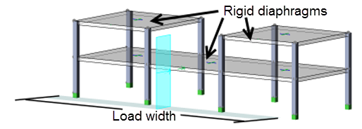 If there are no suitable diaphragms on the top level, the load is applied at the next level down.
