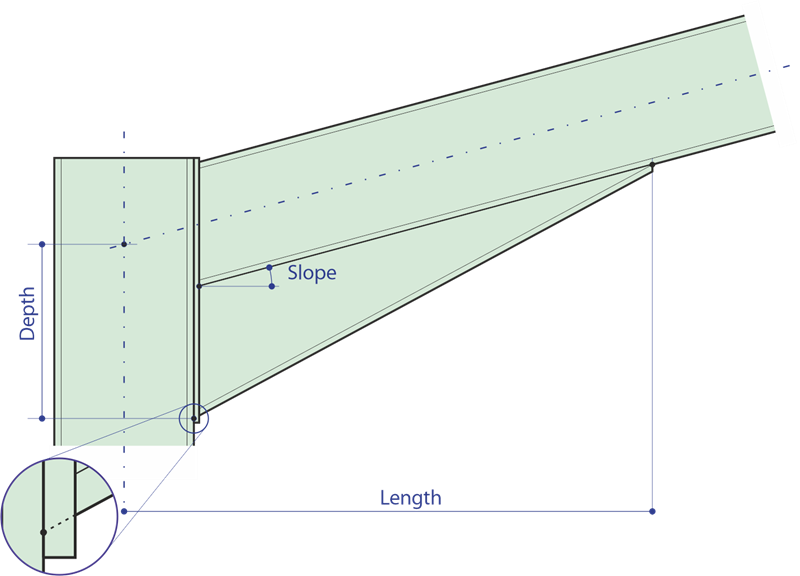In the case of an inclined beam the haunch length and depth would therefore