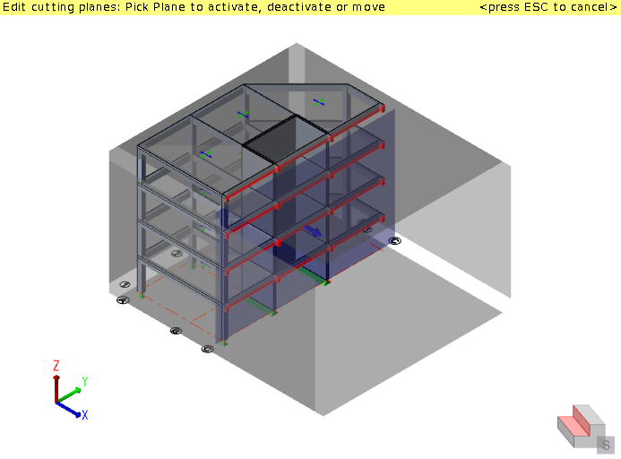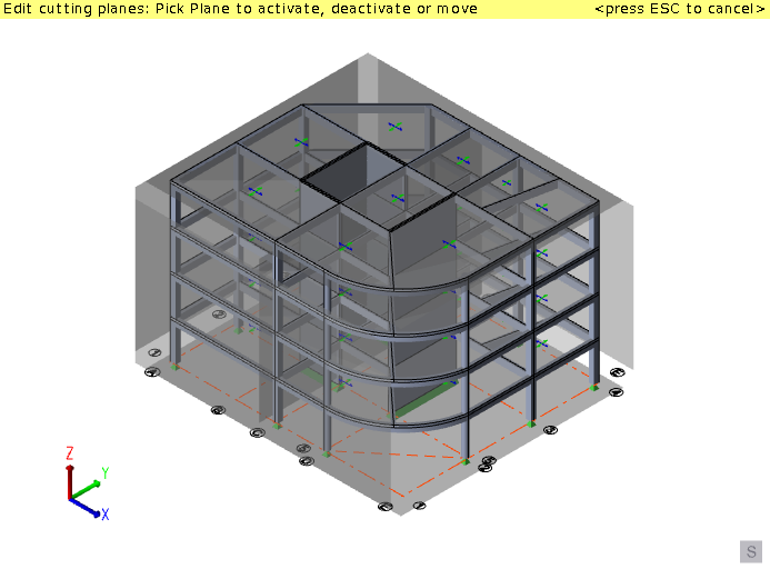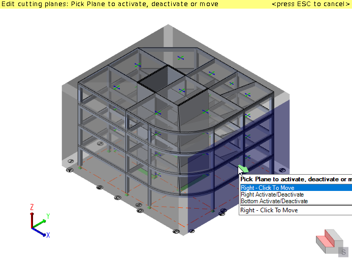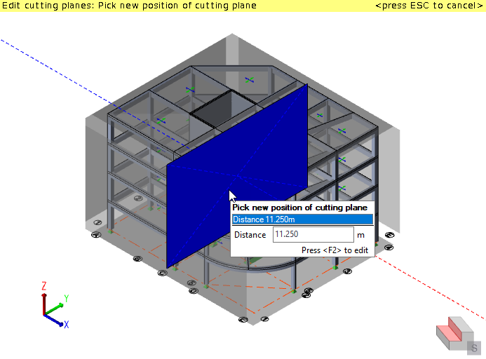 Cutting planes can be aligned on plan to the global axes, the building directions, or a custom angle.