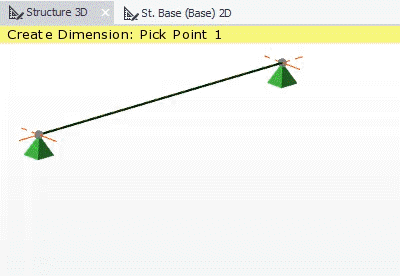 Dimensions allow you to show distances between the appropriate points in your structure. The dimension lines are included on any drawings you create. You can also measure distances and angles without creating dimensions.