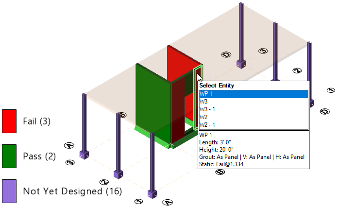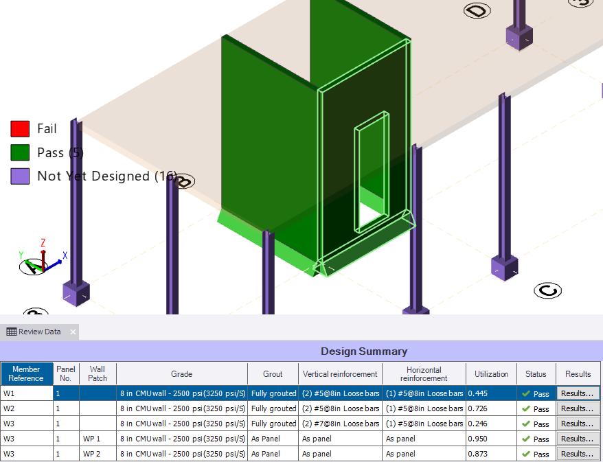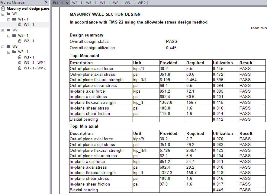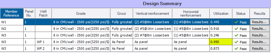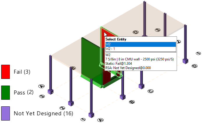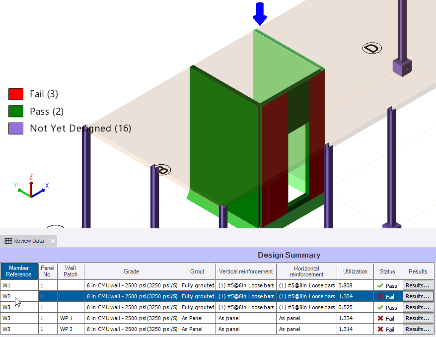 After a few seconds the utilization ratios are recalculated for both walls and W2 which was previously failing should now be passing.