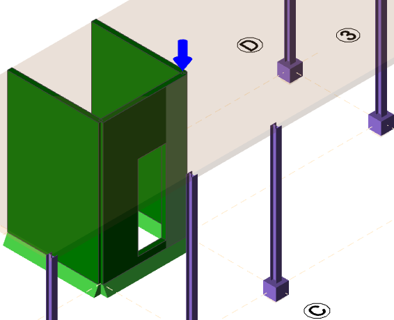 To create an opening, pick the reference point where grid B meets the base level grid.