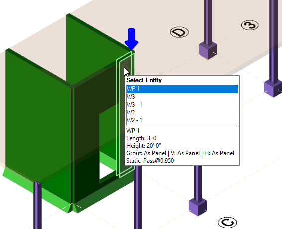 - In the Structure 3D view, while holding down the Ctrl key, left click on wall W1 and
