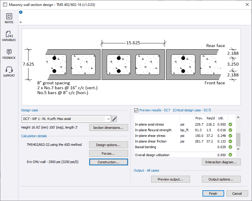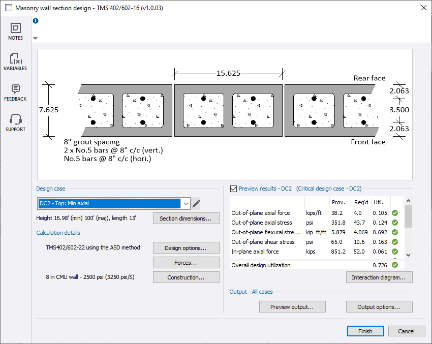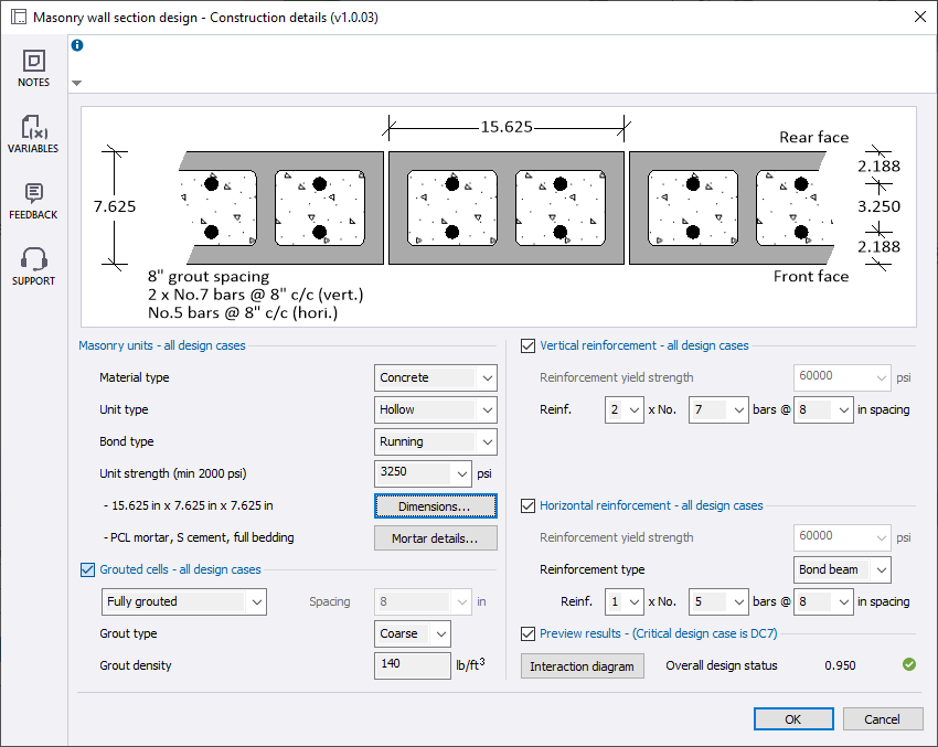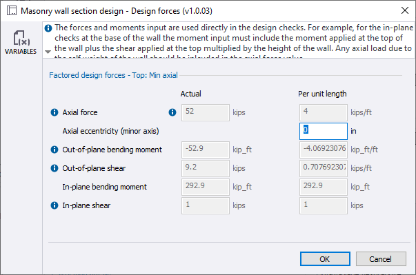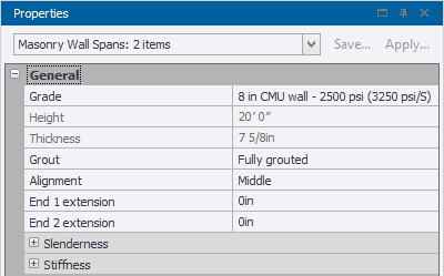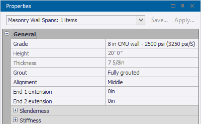 Tip:All of the above tooltip information can be summarized in a Design Summary table. We strongly recommend that you open the summary and then keep it displayed throughout the entire masonry design process.