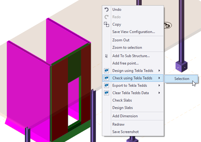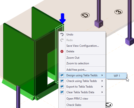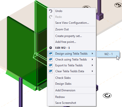 - Right click on W3 in the Structure 3D view and choose Check using Tekla Tedds>