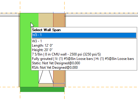 For this example we can accept the default 8 in CMU wall -2500 psi.