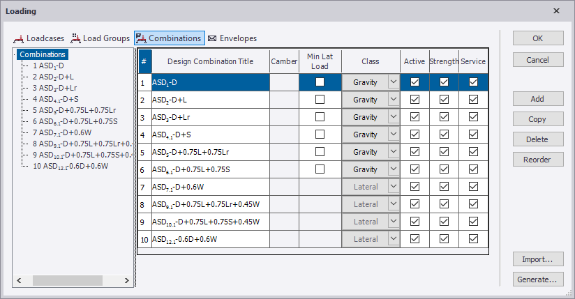 Each of the six design cases are automatically established from the enveloped load combination results.