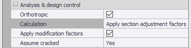 When the Apply section adjustment factors option is used, the wall density and orthotropic factors, where necessary, are automatically calculated during the analysis process in Tekla Structural Designer, using Tedds.