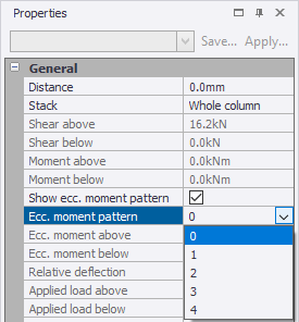 The red marker line can be set to a specified distance in the Properties window to allow the real and ecc. moment values above and below the line to be displayed.