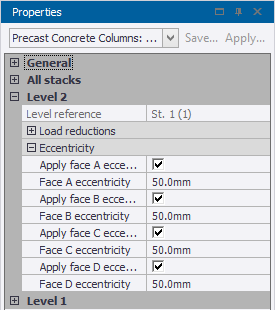 Nominal eccentricity moments arise in precast columns due to the reactions from pin ended beams being applied at eccentricities to the column centerline. The eccentricity moments are calculated for all regional codes, and can be interrogated in the Load Analysis View.