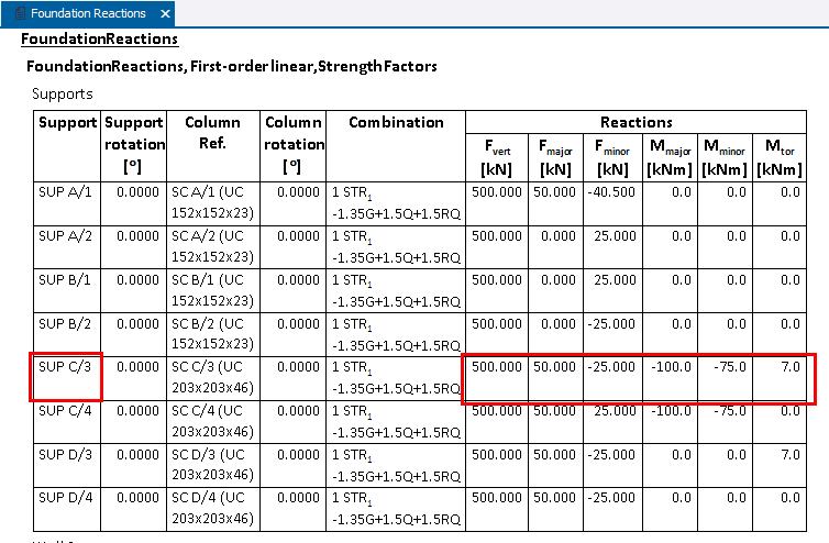 Forces/moments are reported in the Foundation Reactions report.