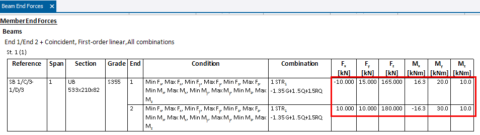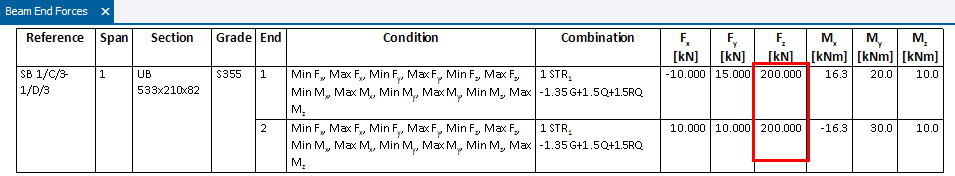 The user might want the forces reported to be not less than minimum values, for example they might enter 200kN in the ‘Major Axis Shear Force’ under ‘Beam End Forces.