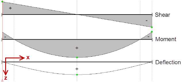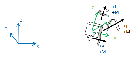 - Out-of-plane shear (Fxz and Fyz) is positive when shear is such that moment is increasing in the positive X or Y direction.
