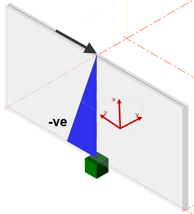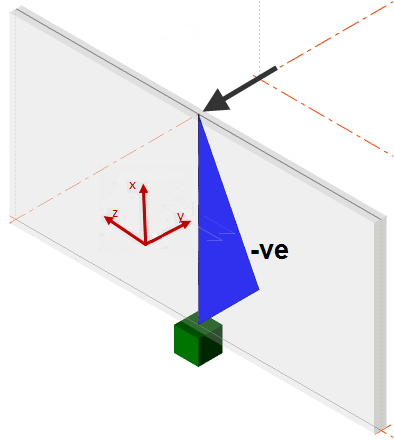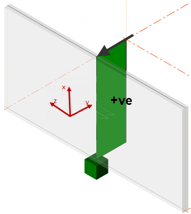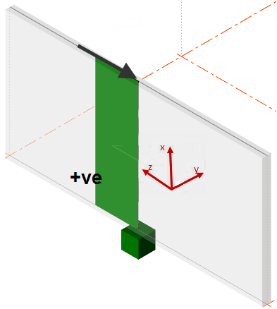 - The local x axis plane is in the plane of the panel, aligned with the global X axis and positive in the positive global X direction.