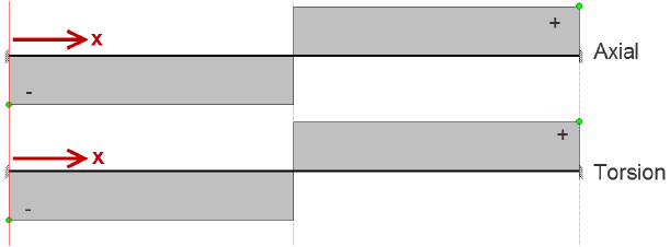 - Axial and torsion: force in x and bending about the x axis