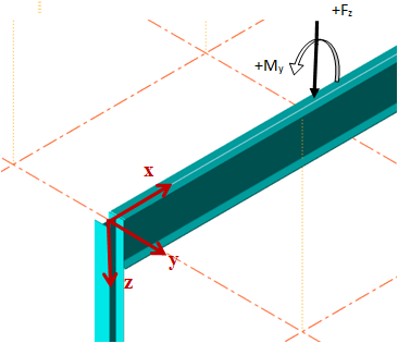 - The compression of axial loads (Fx and Fy) is negative.