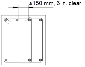 The maximum allowed horizontal center spacing of hoops in confinement regions of beams is limited by ACI 318 depending on the type of Seismic Force Resisting System considered.