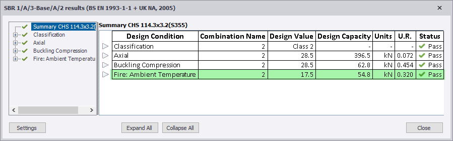 The ambient temperature calculations can now be included in the design checks for braces by selecting Ambient temperature utilization located under Fire proofing in brace properties.