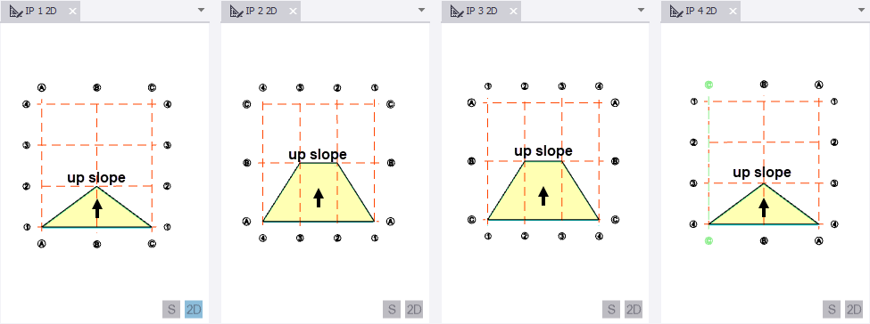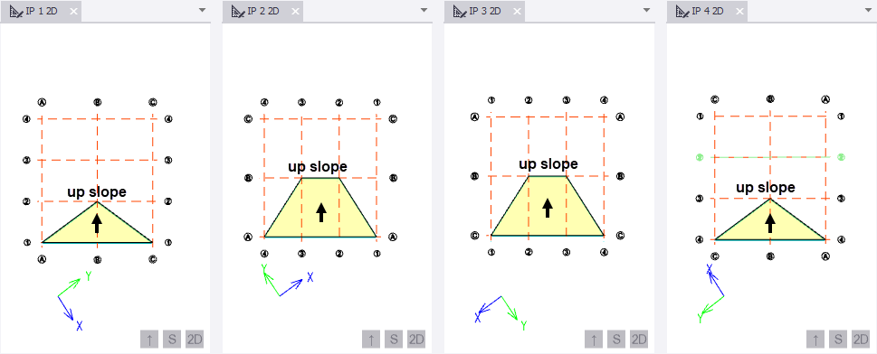 In previous releases sloped plane views were always orientated according to the up slope direction. This could be confusing if multiple planes in the model sloped in different directions.