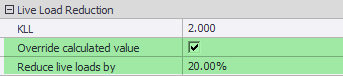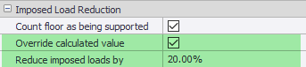 A user override option (Override calculated value) has been added for the members in which imposed/live load reductions take place automatically.