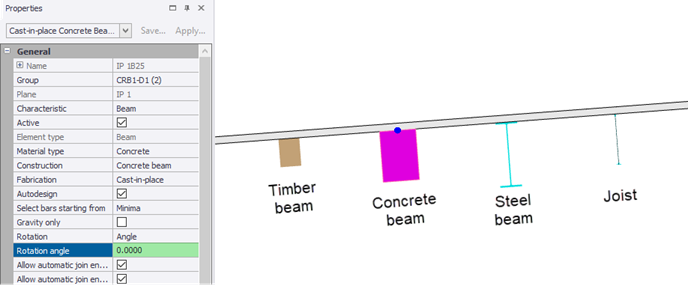 Previously when concrete beams and joists/joist girders were placed in a sloped plane they were orientated in the same way as beams of other materials, so that if the rotation angle was 0 degrees the minor (z) axis would be normal to the plane.
