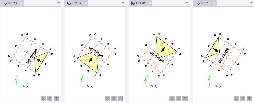 To illustrate, consider the following model in which there are 4 sloped planes, (none of which are aligned to the global axes).