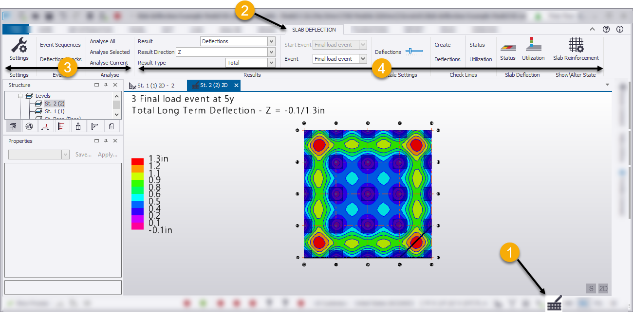 (1) regime, (this also activates the Slab Deflection ribbon (2)).