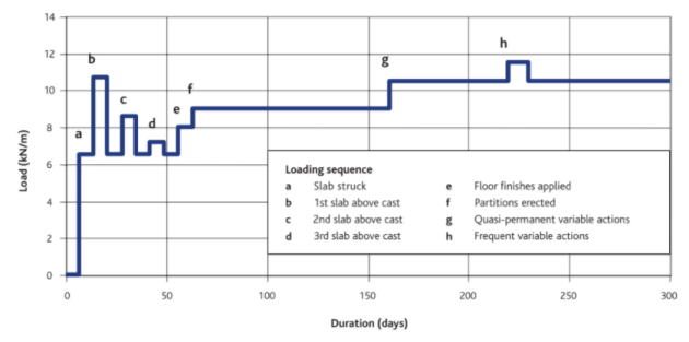 The event sequences for casting any slabs above are not required, since there is no need to make an allowance for additional propping loads. This means that a different event sequence is necessary to deal with the roof. In Tekla Structural Designer differences in event sequences are dealt with using a Custom Event Sequence.
