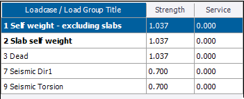 Two lateral loadcases "Seismic Dir1" and "Seismic Dir2" are created by the Seismic Wizard. Being derived from information supplied in the wizard, these cannot be edited.