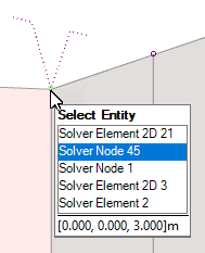 Uncoupled coincident nodes are indicated in the solver model by a V shape symbol above the nodes. As there is no leader/follower relationship the only information included in the tooltip is the node coordinate.