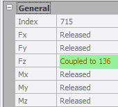 Translationally fixed: Fx, Fy, Fz Rotationally fixed: Mx, My, Mz |