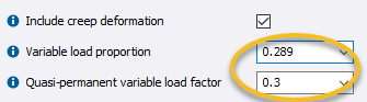 Tekla Structural Designer automatically determines the effects of creep and considers the long term deflection in the total load deflection check.